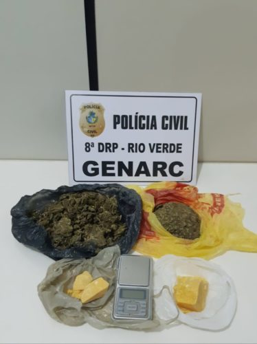 No momento da abordagem, foi localizada uma pequena quantidade de droga com o adolescente. Ele confessou aos policiais possuir mais drogas em sua residência onde, após buscas, os policiais civis localizaram entorpecentes (maconha, crack e skunk) e uma balança de precisão. O menor encontra-se agora à disposição da Vara da Infância e Juventude.