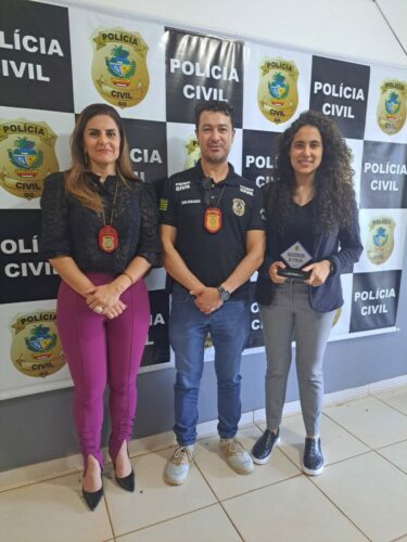 A Gerente de Apoio às Delegacias Regionais e do Entorno, Cybelle Tristão, entregou, na tarde dessa quarta-feira (10/5), placa de destaque da Operação Átria à Delegacia Especializada no Atendimento à Mulher (Deam) de Águas Lindas. A Operação Átria, realizada em março deste ano, contou com ações nacionais para diminuir as ocorrências de violência doméstica e dar uma pronta resposta no mês da mulher. A placa de destaque na operação foi entregue à delegada adjunta da Deam de Águas Lindas, Fernanda Carvalho, e ao delegado regional da de Águas Lindas (17ª DRP), Cleber Martins, na presença dos servidores da Deam que auxiliaram nos números grandiosos alcançados pela operação no município.