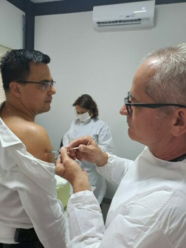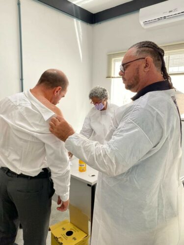 A Delegacia-Geral de Polícia Civil deu início, na manhã desta terça-feira (25/4), à campanha de vacinação dos policiais civis contra a influenza. A vacinação acontece na Divisão de Proteção à Saúde do Servidor (DPSS) da Polícia Civil de Goiás, das 9h às 16h, e recebe os policiais civis lotadoS em Goiânia para se vacinarem contra o vírus da gripe. A campanha segue com vacinação ainda amanhã (26/4) e depois no dia 03 de maio. Hoje de manhã, foram imunizados o delegado-geral da PCGO, André Gustavo Corteze Ganga, o delegado-geral adjunto, Murilo Polati Rechinelli, e outros policiais que também compareceram à DPSS.