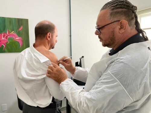 A Delegacia-Geral de Polícia Civil deu início, na manhã desta terça-feira (25/4), à campanha de vacinação dos policiais civis contra a influenza. A vacinação acontece na Divisão de Proteção à Saúde do Servidor (DPSS) da Polícia Civil de Goiás, das 9h às 16h, e recebe os policiais civis lotadoS em Goiânia para se vacinarem contra o vírus da gripe. A campanha segue com vacinação ainda amanhã (26/4) e depois no dia 03 de maio. Hoje de manhã, foram imunizados o delegado-geral da PCGO, André Gustavo Corteze Ganga, o delegado-geral adjunto, Murilo Polati Rechinelli, e outros policiais que também compareceram à DPSS.