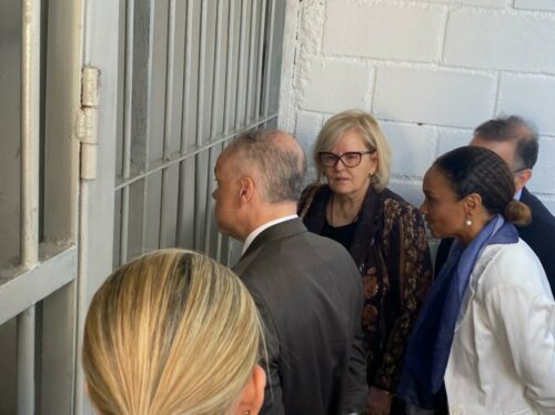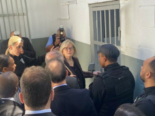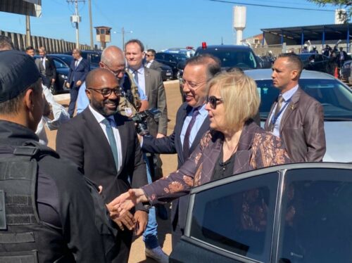 O delegado-geral da Polícia Civil de Goiás, André Ganga, acompanhou, na manhã de hoje (02/6), a visita da ministra e presidente do Supremo Tribunal Federal (STF), Rosa Weber, ao complexo prisional de Aparecida de Goiânia – Penitenciária Odenir Guimarães (PGO). A visita faz parte do conjunto de inspeções que a ministra, também presidente do Conselho Nacional de Justiça (CNJ), realiza nos presídios do país. Além do delegado-geral da PCGO, estiveram na visita o secretário de Segurança, Renato Brum; o subsecretário de Segurança, Deusny Silva Filho; o diretor-geral da Polícia Penal, Josimar Pires; o comandante-geral da Polícia Militar, Coronel André Henrique Avelar; o presidente do Tribunal de Justiça de Goiás, desembargador Carlos França, entre outras autoridades.