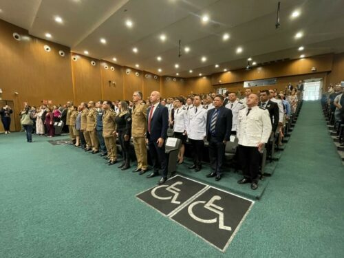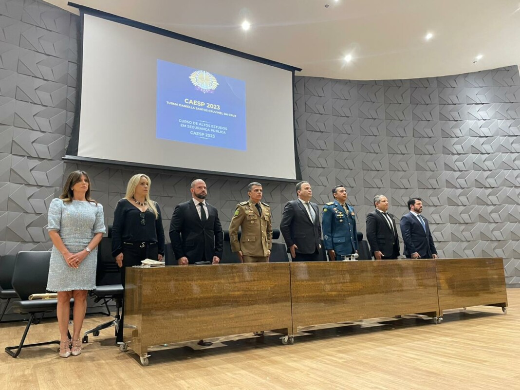 O Delegado-Geral da Polícia Civil de Goiás, André Ganga, e o Delegado-Geral adjunto, Murilo Polati, participaram, na manhã desta sexta-feira (18), da formatura do Curso de Especialização em Altos Estudos em Segurança Pública – CAESP/2023, no âmbito da Secretaria de Estado da Segurança Pública. A cerimônia foi realizada no Auditório Carlos Vieira, na Assembleia Legislativa de Goiás.