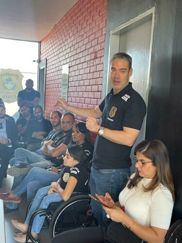 O delegado-geral de Polícia Civil, André Ganga, realizou, na tarde desta quinta-feira (6), reunião com os policiais civis e servidores da 12ª Delegacia Regional de Polícia de Porangatu. O chefe da Polícia Civil tratou de assuntos atinentes às demandas dos profissionais e da instituição no norte goiano. Estiveram presentes na reunião o gerente de planejamento operacional (GPO), Rodrigo Mendes, e a gerente de Apoio às Delegacias Regionais e do Entorno, Cybelle Silva Tristão. Foram prestadas informações sobre planos e metas da Polícia Civil e também ouvidas demandas da regional.