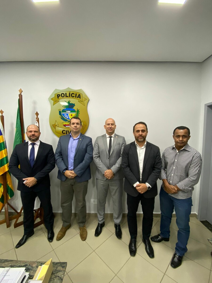 A Direção-Geral da Polícia Civil de Goiás recebeu, na manhã desta terça-feira (17), a visita institucional do secretário de Estado da Casa Civil, Jorge Luís Pinchemel. A reunião tratou de assuntos de interesse de ambas as pastas. O secretário foi recebido pelo delegado-geral da Polícia Civil, André Ganga; delegado-geral adjunto, Murilo Polati Rechinelli, e pelo superintendente de Polícia Judiciária, Marcelo Aires. Também esteve presente na reunião o delegado Abadio Souza e Silva, que está à disposição da assessoria técnica da Casa Civil.