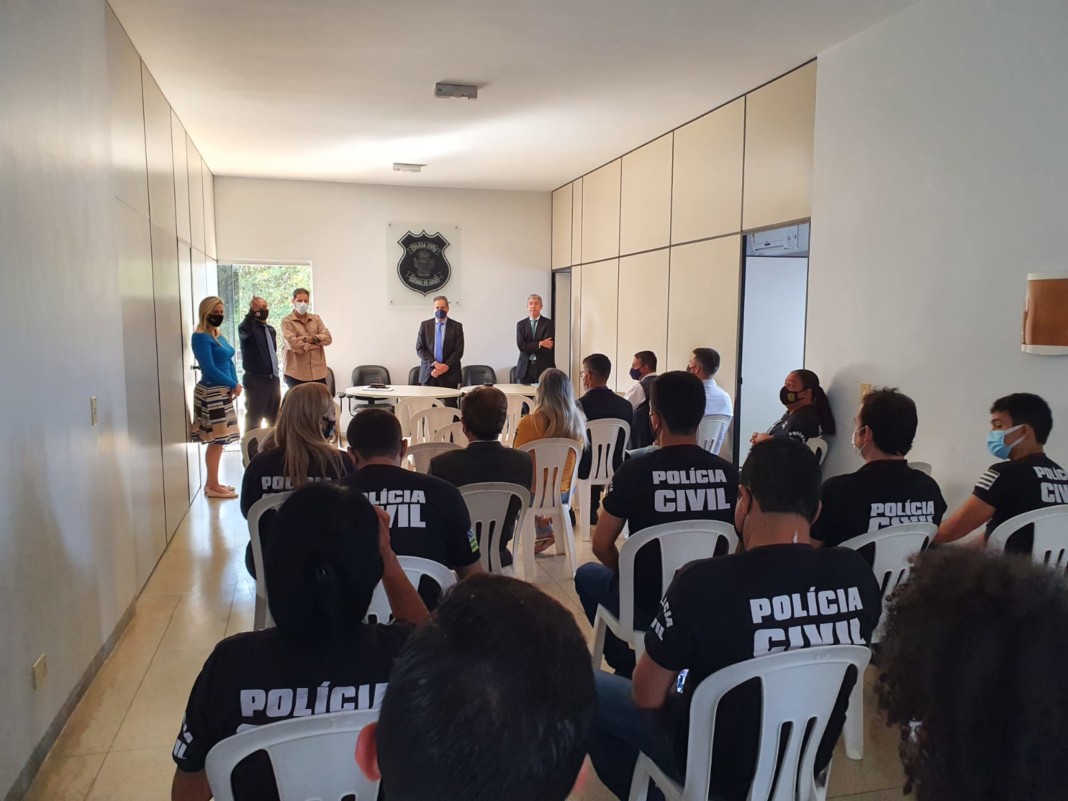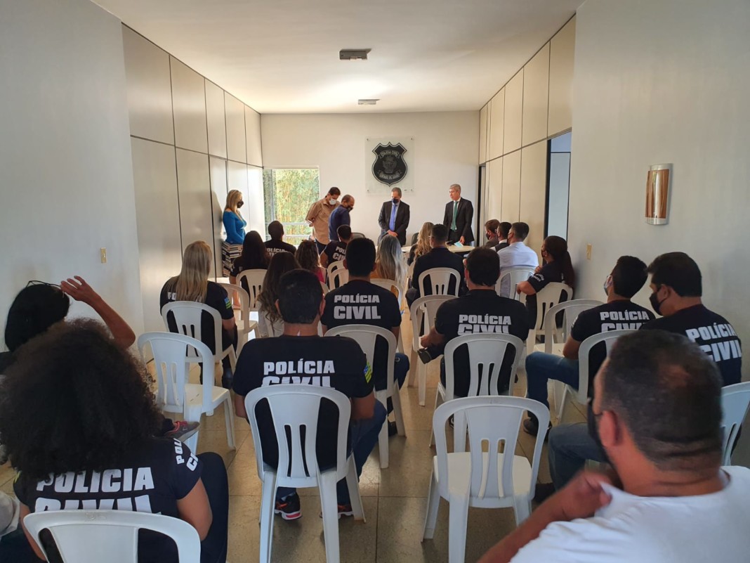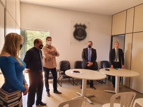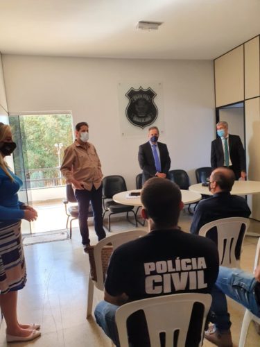 Na manhã desta quinta-feira (05), o Delegado-Geral da Polícia Civil de Goiás, Alexandre Lourenço, esteve na sede da 18ª Delegacia Regional de Polícia (DRP), em Uruaçu. A visita faz parte do Projeto “Direção-Geral Participativa”, que prevê uma série de visitas presenciais às delegacias regionais da PCGO no interior do Estado. No dia anterior, a visita foi feita a Porangatu, sede da 12ª DRP. A visita serve para conhecer as particularidades da região e os anseios e necessidades dos policiais civis lotados no interior. A visita do Delegado-Geral foi acompanhada pelo Superintendente de Polícia Judiciária, Reinaldo Koshiyama, e pelo Gerente de Gestão e Finanças, Murilo Gonçalves.
