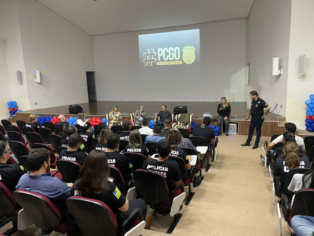 O Delegado-Geral da Polícia Civil de Goiás, Alexandre Pinto Lourenço, participou, na tarde desta quinta-feira (22/9), de mais uma edição do projeto Direção-Geral Participativa. Desta vez, o chefe da PCGO esteve 16ª Delegacia Regional de Polícia de Trindade, onde se reuniu com policiais civis do local para traçar planos e metas da atuação da PCGO na região. Além disso, o encontro serviu também para que o Delegado-Geral ouvisse dos policiais sugestões e demandas a fim de otimizar a gestão administrativa. Alexandre Lourenço apresentou alguns resultados importantes dos anos de 2021 e 2022, bem como sobre o impacto da regional de Goiás no combate ao crime no Estado. Participaram do encontro, além do chefe da PCGO e da delegado titular da 16ª DRP, Silvana Nunes, o Delegado-Geral Adjunto, Reinaldo Koshiyama de Almeida; a chefe da Superintendência de Polícia Judiciária (SPJ), Ana Claudia Rodrigues Stoffel; o delegado-chefe Gerência de Gestão e Finanças (GGF), Murilo Gonçalves; e a chefe da Divisão de Comunicação, delegada Paula Meotti.