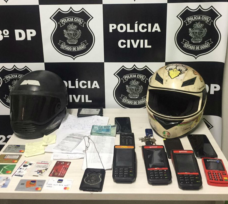 Os autores são do estado de São Paulo e vieram a Goiânia com o intuito exclusivo de praticar crimes. Os policiais apreenderam diversas máquinas de cartão e material de fraude.