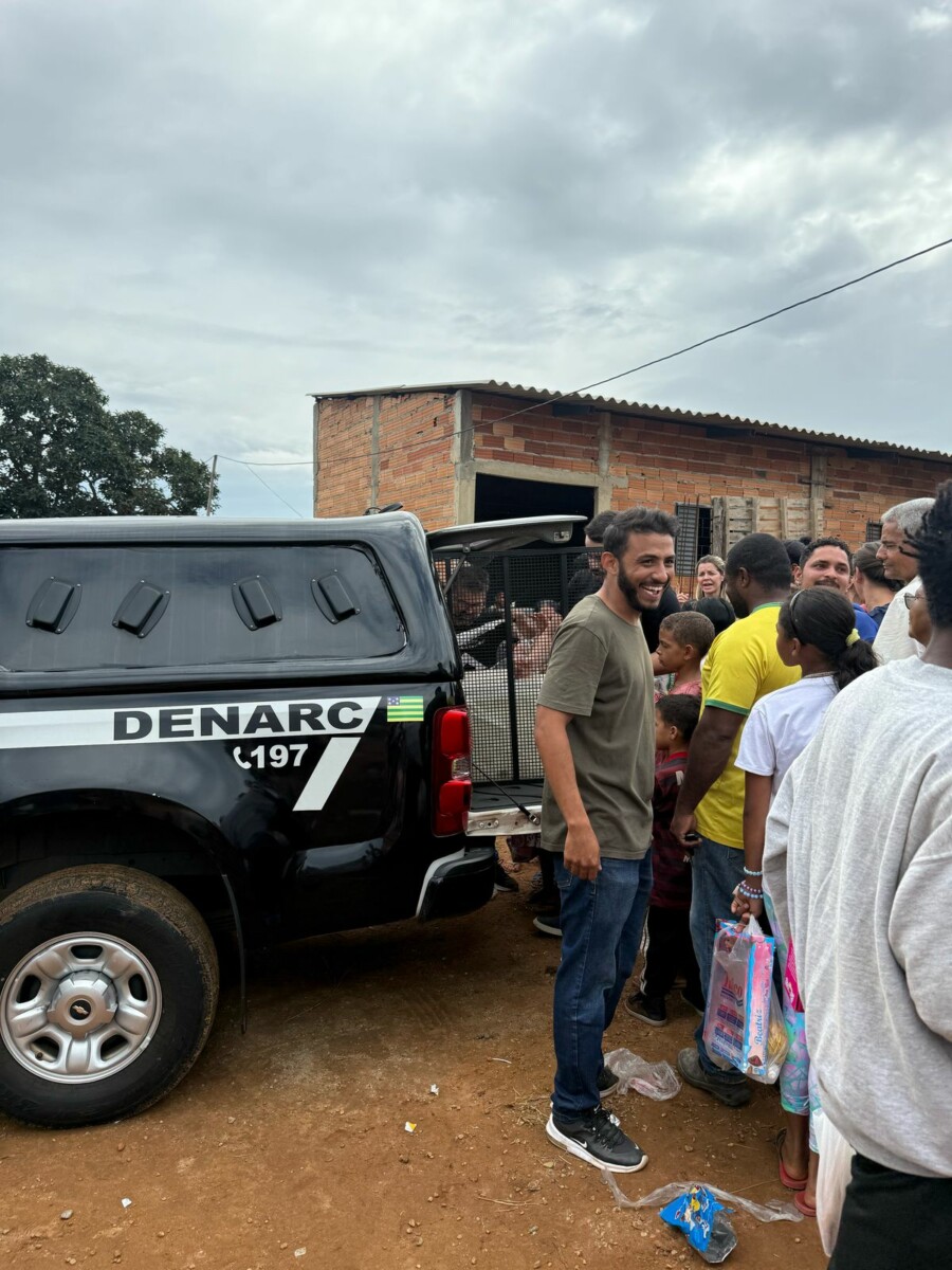 A Polícia Civil de Goiás, por meio da Gerência de Ações Estratégicas da PCGO na Seinfra e da Delegacia Estadual de Repressão a Narcóticos (Denarc), realizou ação social no último domingo (13). A ação solidária ocorreu no Instituto da Cidadania, Bem-estar Social e Emocional (Casa Essencial), em Aparecida de Goiânia, para onde os policiais civis levaram donativos. Foram entregues cestas básicas na comunidade Alto da Boa Vista, em Aparecida, para várias famílias. Ao todo, foram distribuídas quatro toneladas de alimentos, além de brinquedos e também ovos de Páscoa para as crianças e picolés. A ação foi realizada em meio à celebração da Semana Santa e mostra o viés social e comunitário de assistência da Polícia Civil às pessoas vulneráveis.
