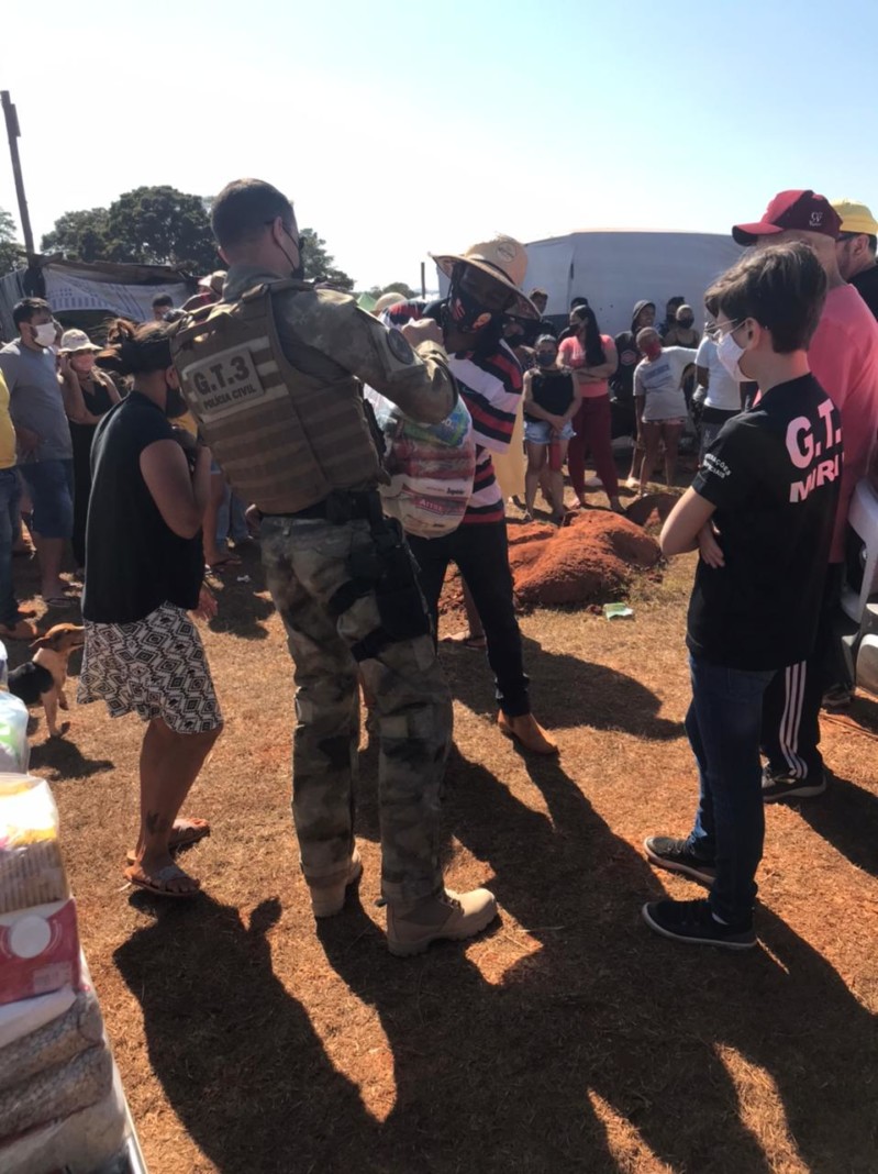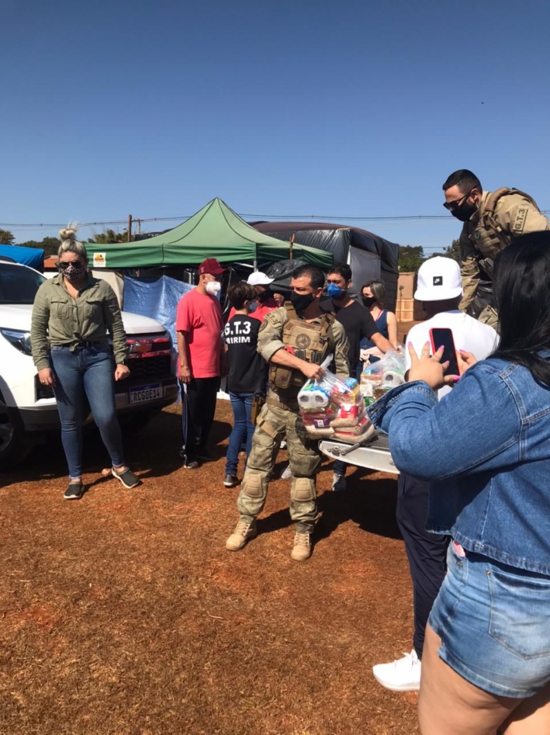 A Coordenadoria de Operações e Recursos Especiais (CORE/GT3) entregou neste domingo (11) 101 cestas básicas em comunidade carente do bairro Estrela D’Alva, Goiânia. A arrecadação e doação foram feitas em parceria com um bar da capital e vai auxiliar dezenas de famílias, sobretudo neste período de pandemia, quando muitas delas perderam a renda.