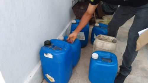 A ação foi subsidiada por mandado de busca e apreensão, em uma residência no Jardim Novo Mundo, Goiânia, tendo em vista o grande risco de se manter líquidos inflamáveis em residência sem a menor estrutura para a atividade.