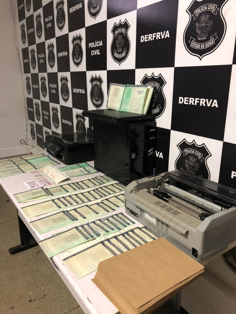 A Polícia Civil, por meio intermédio Delegacia Estadual de Repressão a Furtos e Roubos de Veículos Automotores (DERFRVA), deflagrou na noite dessa quarta-feira (30) operação policial a fim desarticular laboratório de falsificação de documentos veiculares. Os policiais prenderam em flagrante delito André Rosa de Freitas, apontado como um dos maiores falsificadores do Estado de Goiás.