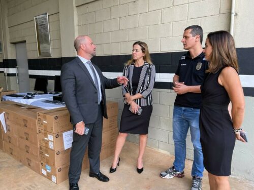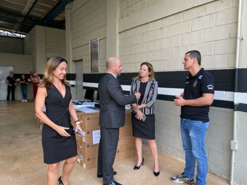 A direção da Polícia Civil de Goiás, por meio do delegado-geral André Ganga e da superintendente de Gestão e Finanças Renata Cheim, entregaram, na tarde desta terça-feira (28), 30 computadores e uma van à Escola Superior da Polícia Civil, dirigida pela delegada Tatyane Cruvinel.