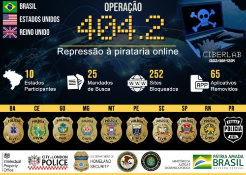 A ação integrada no combate à pirataria online está sendo desencadeada ainda, como mencionado, com a colaboração das Embaixadas dos Estados Unidos (Adidancia de Polícia de Imigração e Alfândega – Homeland Security Investigations/HSI – e o Departamento de Justiça) e do Reino Unido no Brasil (IPO – Intellectual Property Office e PIPCU – Police Intellectual Property Crime Unit).