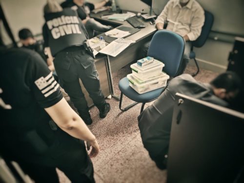 A Operação Educare resultou na apreensão de celulares, computadores e inúmeros documentos. Duas pessoas ainda foram presas em flagrante delito pelo crime de posse ilegal de arma de fogo.