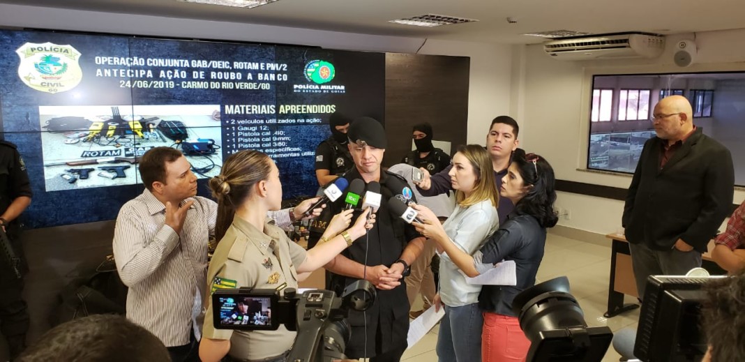 Os suspeitos passaram a ser monitorados após compartilhamento de informações entre o Grupo Antirroubo a Banco (GAB), da Deic, e o Batalhão de Rotam, da PM. Os envolvidos seriam de São Paulo, Tocantins e Goiás. A Polícia descobriu que eles planejavam roubar um banco em Carmo do Rio Verde (GO). “Eles pularam o muro por meio de um lote vizinho e tentavam cortar a parede que dá acesso ao cofre. Era um grupo extremamente organizado e especializado nesse tipo de assalto”, explicou o delegado Samuel Moura, do Grupo Antirroubo a Bancos (GAB). Apesar do armamento pesado, não foram encontrados artefatos explosivos.