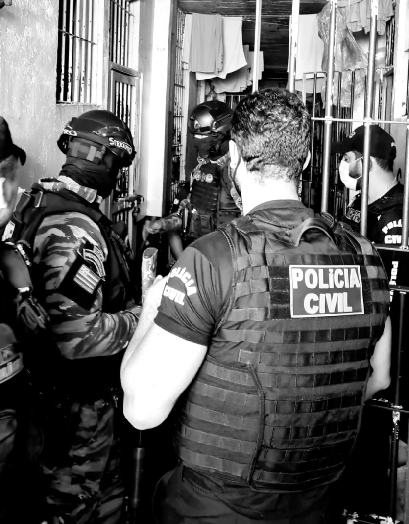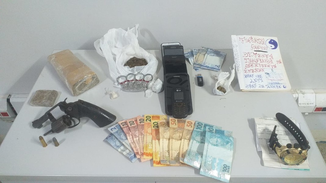 No mais, durante o cumprimento dos 16 mandados de busca e apreensão deferidos judicialmente, foram apreendidos cerca de 2,5 Kg de drogas ilícitas (maconha) e uma arma de fogo, tipo revólver, calibre .38, devidamente municiado.