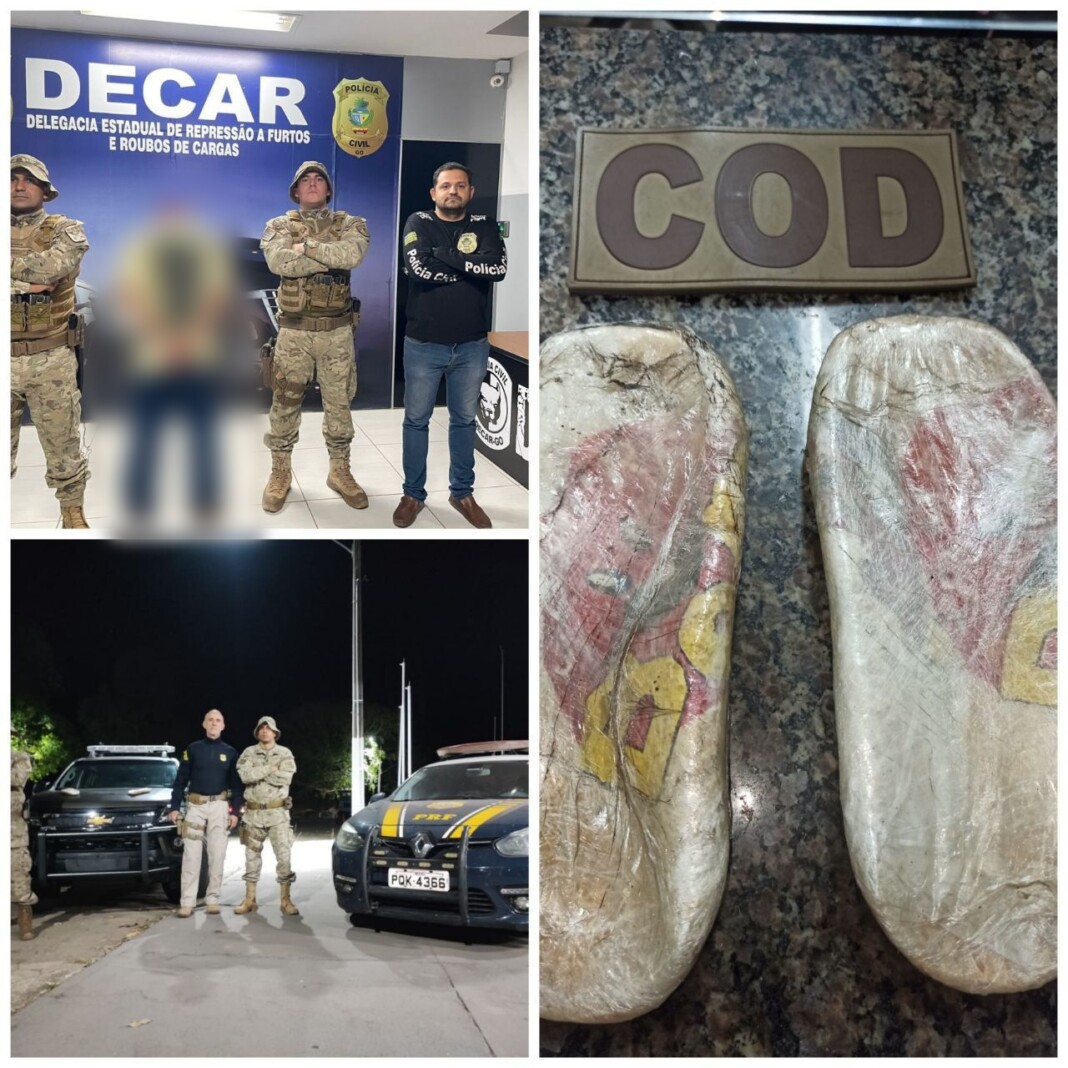 Equipes do COD, PRF e DECAR lograram êxito em abordar um ônibus que fazia rota interestadual da cidade de Cuiába-MT com destino a Brasília-DF e, durante as buscas, foi encontrado dentro do sapato de um dos passageiros, em forma de palmilha, cerca de 1 kg de pasta base de cocaína.