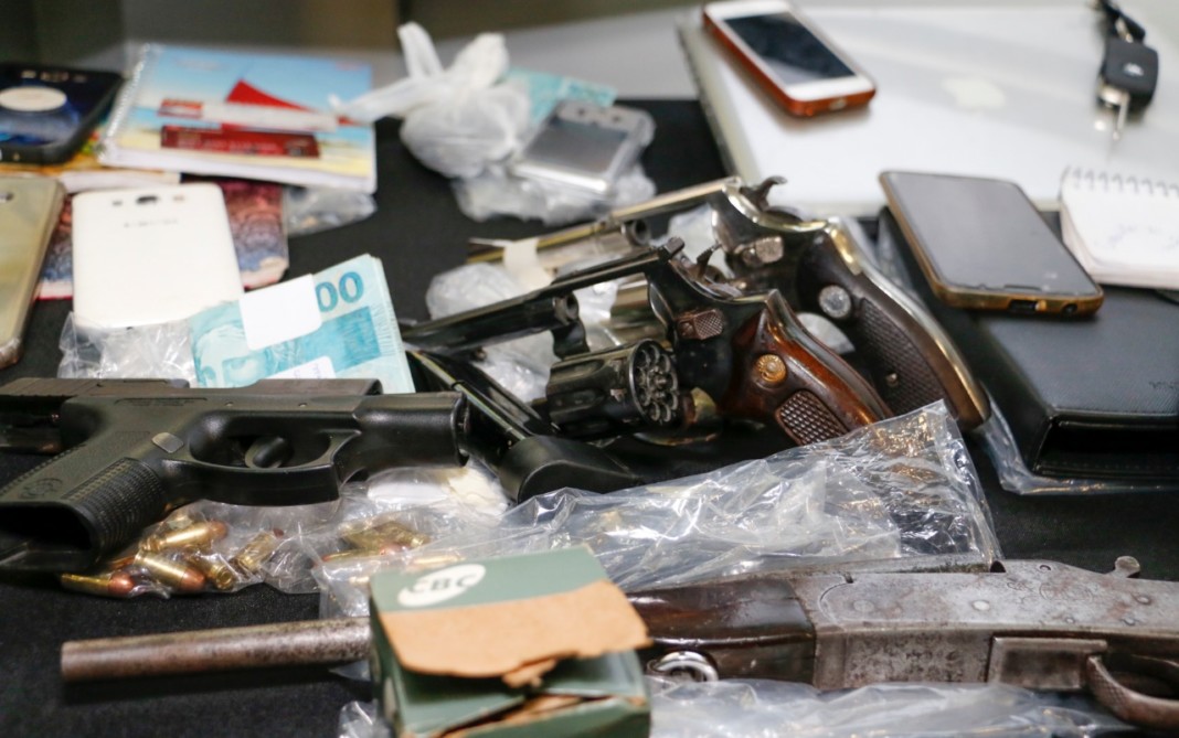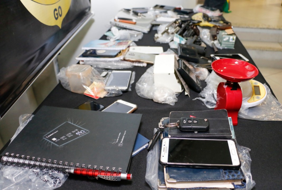 Foram apreendidos durante a operação drogas, celulares, quatro armas, dinheiro e os cadernos de controle de batismo e contabilidade de drogas do Comando Vermelho.