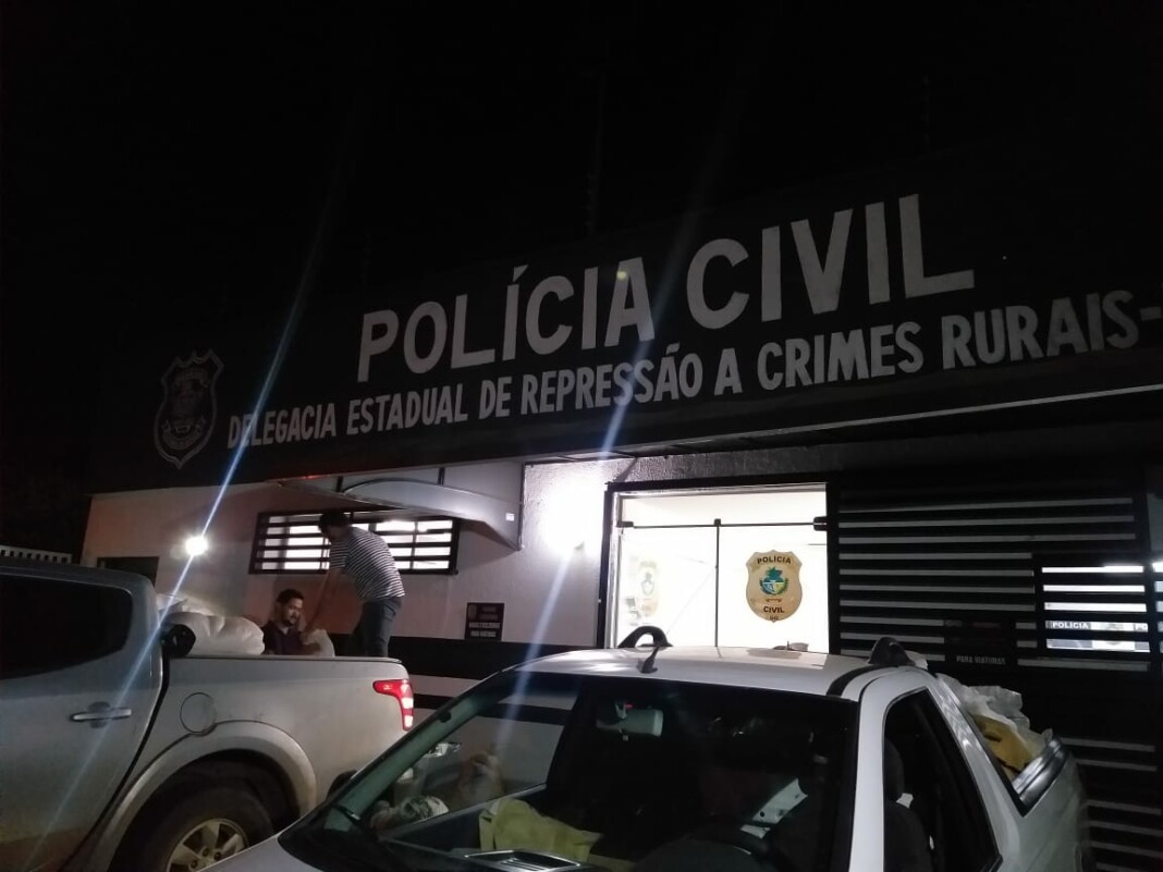 Um homem de 53 anos foi preso em flagrante por crime ambiental e as investigações prosseguem, com vistas à identificação de demais envolvidos. O material apreendido já foi analisado pelo IBAMA, confirmando que seria produto agrotóxico ilegal. Agora, será encaminhado para perícia da SPTC-GO e depois para o IBAMA para fins de destinação ambientalmente adequada. As diligências policiais foram desencadeadas após o compartilhamento de informações entre as instituições envolvidas, um dos pilares de trabalho da DERCR.