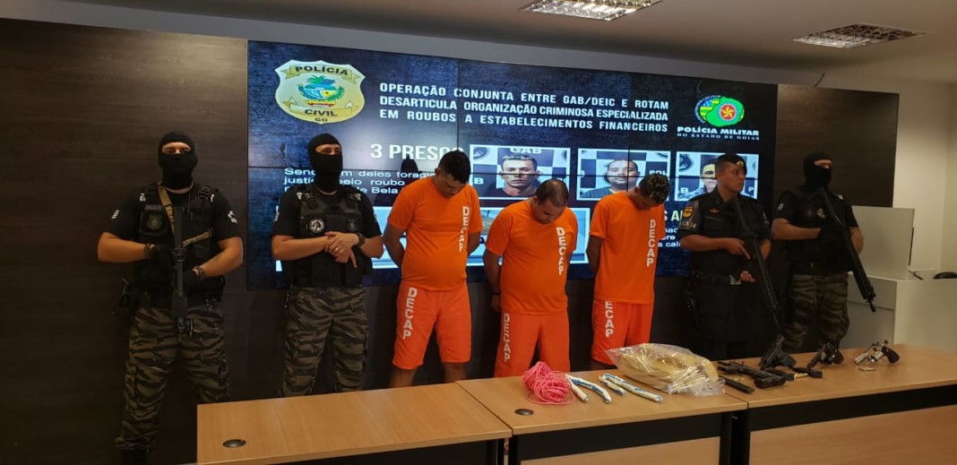 O Grupo Antirroubo a Banco (GAB), núcleo pertencente à Delegacia Estadual de Investigações Criminais (Deic), prendeu, na tarde da última terça-feira (2), três pessoas envolvidas na explosão de caixas eletrônicos. A operação foi feita em conjunto com o Batalhão de Rotam da Polícia Militar.