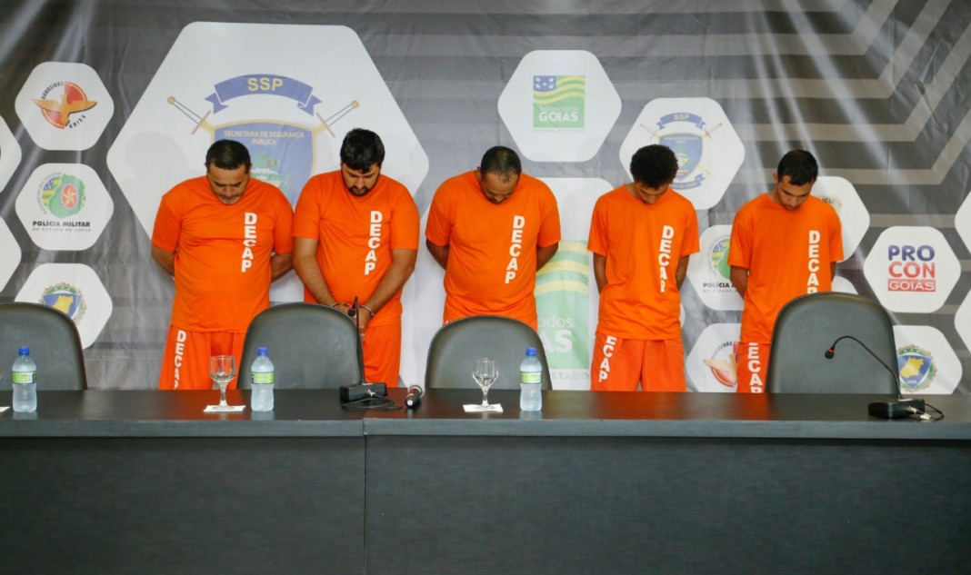 A equipe da DERCR investigou, identificou os autores e representou pelas devidas medidas cautelares, cumprindo, na sequência, os mandados de prisão temporária contra oito pessoas: Ronaldo Bezerra da Silva, Rertes Pinto Ribeiro, Francisco Cleuber da Silva, Sinomar Moreira dos Reis Júnior, Vitor Manoel da Silva, Welington de Sá Alves Teixeira, Renê Ferreira dos Santos e Eleosmar Almeida Rocha, supostos membros efetivos da maior organização criminosa atuante no estado de Goiás na área de roubo e furto de gado. Os suspeitos praticaram, em tese, os crimes de roubo, furto de semoventes e organização criminosa, investigada. Até o momento, seis inquéritos policiais da Delegacia de Repressão a Crimes Rurais já estão com as autorias determinadas e casos solucionados, mas há indícios de outras atuações da referida orcrim. Também foram cumpridos 4 mandados de busca e apreensão.