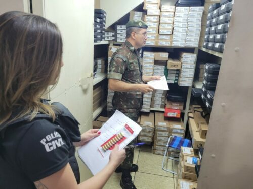 PCGO e Exército Brasileiro realizam fiscalização em lojas de armamentos, em Goiânia
