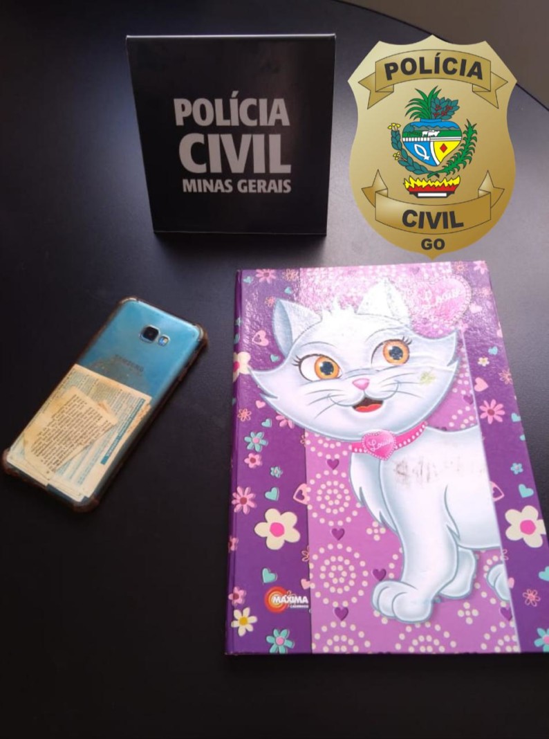 A DERCC Goiás compartilhou as informações com a Polícia Civil de Minas Gerais, que imediatamente representou judicialmente pela prisão preventiva do homem identificado. O autor foi preso, na manhã de hoje (26), em Minas Gerais. A identificação e prisão do criminoso somente foi possível pela atitude corajosa da denunciante e pelo trabalho em conjunto realizado entre as Polícias Civis de Goiás e Minas Gerais, o que certamente resultou no socorro à criança, que conta com apenas 6 anos de idade. Os policiais civis apreenderam o telefone celular do autor e um caderno de anotações da criança, onde ela fez desenhos que retratam o crime sofrido.