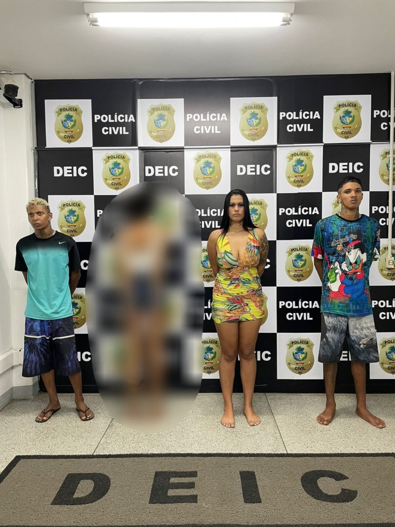 A Delegacia Estadual de Investigações Criminais, através do Grupo de Repressão a Roubos (Garra/Deic), prendeu em flagrante Lucas Sousa Silva, 19 anos; Rhenan Barbosa Camargo, 18 anos e Estfani Melo França, 18 anos, além de apreender um menor de idade, todos suspeitos do crime de latrocínio tentado ocorrido no dia 24 de março deste ano, na Vila Santa Helena, Goiânia. Na madrugada do dia 25, a vítima foi encontrada, em sua residência, esfaqueada na região torácica e perna, com lesões na cabeça, amarrada e amordaçada, sendo socorrida e encaminhada para o hospital, estando internada até o presente momento.
