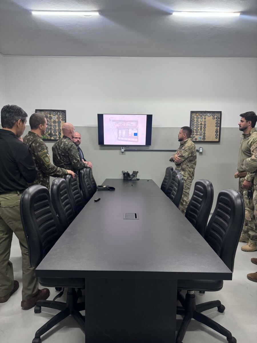 A Polícia Civil de Goiás recebeu, na manhã desta quinta-feira (05), a visita institucional do General de Brigada Sérgio Alexandre de Oliveira, comandante do Comando de Operações Especiais (COPESP) do Exército Brasileiro, às instalações da Coordenadoria de Operações e Recursos Especiais (CORE/GT3). Durante a visita, foram apresentadas as atuais estruturas operacionais da unidade, bem como os projetos estratégicos voltados à implantação do novo complexo operacional da CORE, concebido para ampliar a capacidade técnica, logística e tática da unidade especializada.