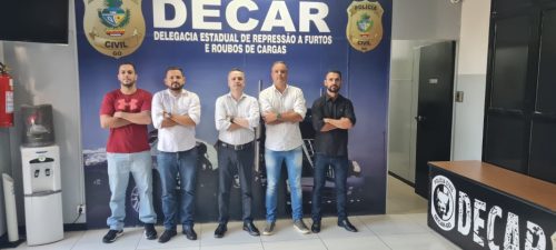 A Delegacia Estadual de Repressão a Furtos e Roubos de Cargas (Decar) recebeu nessa quarta-feira (26/10) a visita da Polícia Federal. Os delegados Otávio, Pedro Ricardo e o analista Yuri estiveram na sede da Decar, onde conheceram a estrutura da delegacia e trocaram experiências e técnicas de investigação e combate ao crime organizado patrimonial, mais notadamente furto e roubo de cargas. Eles foram recebidos pelos delegados Alexandre Bruno de Barros e Diogo Barreira, titular e adjunto, respectivamente, da Decar.