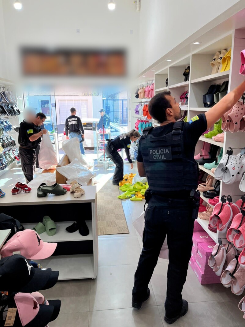 A Polícia Civil, através da Delegacia Estadual de Repressão a Crimes Contra o Consumidor (Decon) e da Delegacia de Caldas Novas, nesta quinta-feira (22), deflagrou nova etapa da Operação Falsare, a qual tem por objetivo reprimir a prática delituosa do comércio de produtos contrafeitos. Foi cumprida busca em estabelecimento comercial de Caldas Novas, localizado em setor comercial nobre do município, voltado a venda de peças de vestuário. Durante a atividade foram apreendidos aproximadamente 2 mil peças de calçados falsificados, avaliados em R$ 100 mil. Os produtos serão submetidos a exame pericial. Foi instaurado inquérito policial a fim de apurar crimes contra as relações de consumo, na modalidade de expor a comércio produtos falsificados e crime contra marcas e patentes, cujas as penas podem chegar a 7 anos de prisão.