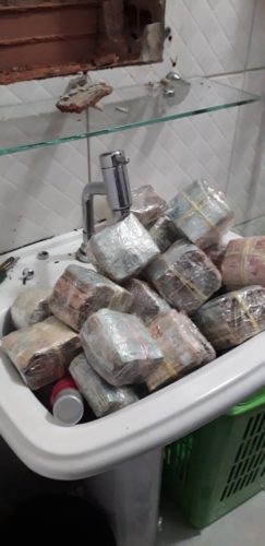 A quantia apreendida foi encontrada escondida dentro da parede, atrás do armário, num banheiro da residência do investigado.