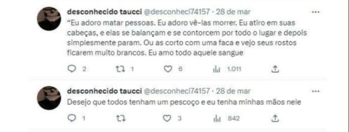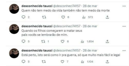A Polícia Civil de Goiás, por meio da Delegacia Estadual de Repressão a Crimes Cibernéticos (DERCC), apreendeu hoje (30/3) um menor de 17 anos de idade que incitava e fazia apologia a crimes de massacres em escolas. Pelas postagens datadas de ontem e hoje, o menor enaltecia a conduta do autor do massacre ocorrido em Suzano/SP, no dia 13 de março último. Nas postagens do menor em redes sociais, verifica-se que citava trechos de cartas suicidas como a de Kurt Cobain e trechos escritos e falados por assassinos em série de fama mundial.