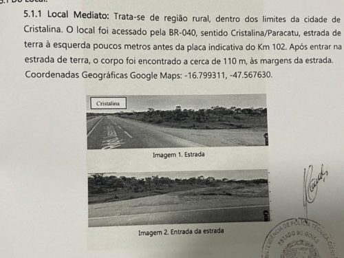 Na data de 1º de abril de 2018, o corpo da vítima foi encontrado carbonizado na cidade de Cristalina, região do entorno do Distrito Federal. A identificação somente foi possível mediante exame de DNA feito no dia 21 de junho de 2018.