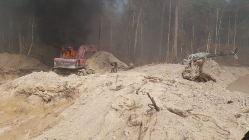 Durante a operação, foram usados três helicópteros para sobrevoar o garimpo. Os policiais encontraram máquinas sendo incineradas, barracões abandonados e algumas pessoas em tentativa de fuga.