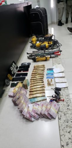 Os presos, oriundos do Mato Grosso e Rondônia, foram encontrados em um condomínio residencial no Jardim Itaipu, em Goiânia, na madrugada de quarta-feira (31). No apartamento, a equipe coordenada pelo Dr. Fabrício Flávio, chefe do GAB/DEIC, localizou R$ 56 mil, 16 munições calibre 32, diversos cartões bancários, comprovantes de depósito, um caderno com anotações de depósito e 4 aparelhos celulares. Também foram apreendidos equipamentos utilizados no furto à agência, tais como, furadeira de alto impacto, alavanca e esmerilhadeira. Ainda foram apreendidos 3 carros e uma moto.