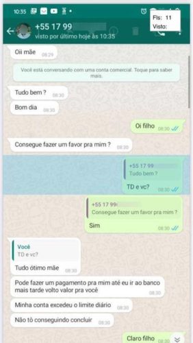 De acordo com as investigações, o homem, de 26 anos, e a mulher, de 23 anos, aplicaram golpe que causou prejuízo de R$3.950 à vítima. No caso em questão, os criminosos utilizaram a fotografia do filho da vítima, e enviaram mensagens via whatsapp, solicitando transferências sob a justificativa de que o limite diário havia estourado. Acreditando falar com seu filho, a vítima acabou transferindo os valores para a conta indicada pelo interlocutor.