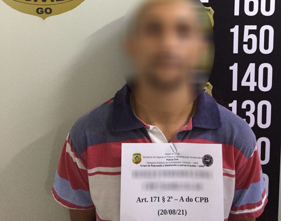 A Polícia Civil de Goiás, por meio do Grupo de Repressão a Estelionato e Outras Fraudes da Delegacia Estadual de Investigações Criminais (GREF/DEIC), prendeu em flagrante, no fim tarde de 20 de gosto último, um homem de 26 anos que aplicou um golpe contra vítima de 57 anos de idade, residente na capital baiana, causando-lhe um prejuízo de aproximadamente R$4.180. A ação policial ocorreu após conhecimento de boletim de ocorrência registrado na 16ª DP de Salvador/BA.