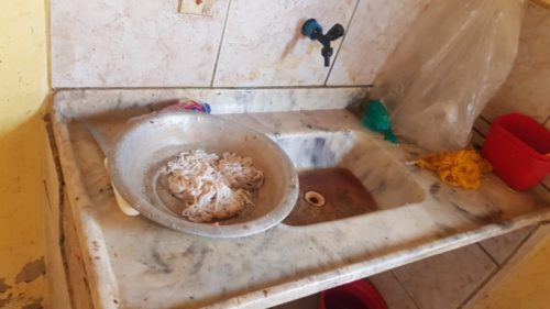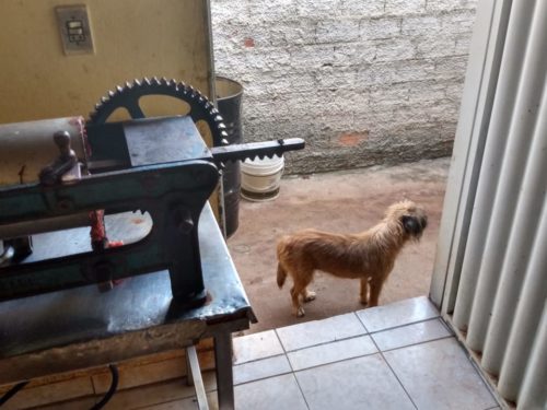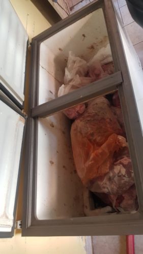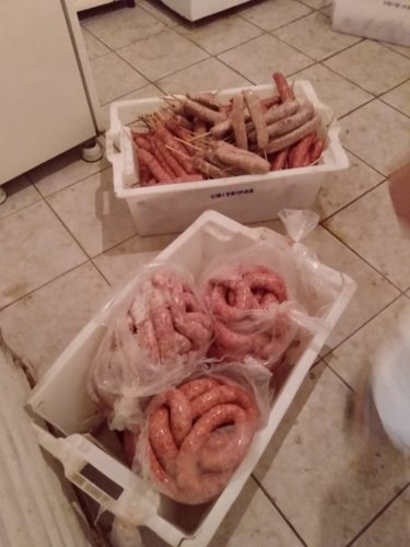 No local, a equipe verificou que um imóvel, aparentemente residencial, era utilizado como fábrica clandestina de linguiça, em situação física precária e sem atender normas básicas de higiene. Dentre as irregularidades, foram encontrados maquinários de trituração da carne e enchimento das linguiças enferrujados, refrigeração inadequada, muitas moscas nas carnes e linguiças ali expostas sem qualquer tipo de proteção. Também muita sujeira, presença de baratas vivas e mortas e um terrível mau cheiro. Além disso, havia no ambiente a presença de fezes e urina do cachorro criado ali, livremente.