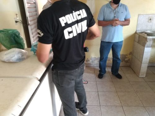 Os policiais civis da Delegacia Estadual de Repressão a Crimes Contra o Consumidor (Decon) deflagraram nesta quarta-feira (04) mais uma etapa da Operação Olho Vivo, em cumprimento a mandado de busca e apreensão numa fábrica clandestina de linguiça, localizada no Parque Tremendão, nesta Capital, contando com o apoio de agentes de saúde da Vigilância Sanitária Municipal e Polícia Técnico-Científica.