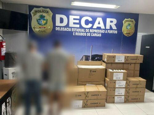 Em continuidade à Operação Fitness, a Delegacia Estadual de Repressão a Furtos e Roubos de Cargas (Decar) efetuou ontem (21) a apreensão, em uma pequena transportadora de Aparecida de Goiânia, de volumes de eletrodomésticos da mesma marca provenientes de carga furtada na operação anteriormente. A carga recuperada chega a R$ 3 milhões. Dois homens foram presos em flagrante: o dono da transportadora e um agregado, que intermediou a negociação dos produtos, bem como entregou parte da carga para parentes do chefe da associação criminosa, sem qualquer nota fiscal. Hoje (22), a vítima do furto de eletrodomésticos, ocorrido em Guarulhos (SP), reconheceu na Decar parte da carga subtraída em maio deste ano, avaliada em meio milhão de reais, a qual foi restituída.