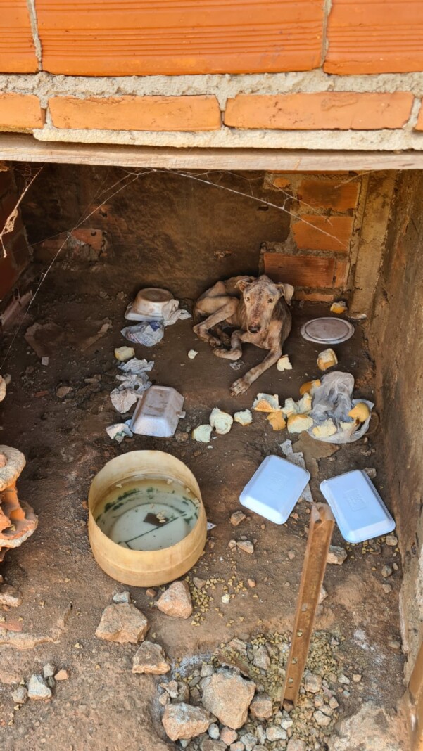 A Polícia Civil de Goiás, por meio do Grupo de Proteção Animal (GPA) da Dema, em apuração a denúncia de maus-tratos recebida pelo Disque-denúncia 197, prendeu em flagrante ontem (31), no Setor Esplanada dos Anicuns, Goiânia, dois homens, de 44 e 47 anos. A cadela vivia em situação de extrema magreza, provável anemia, mucosas descoradas e risco de morte. Os tutores alegaram que estavam cuidando dela, aplicando remédios por conta própria, mas não a levaram ao veterinário. A cadela foi levada à UPA Veterinária e, devido ao estado grave, seguiu para internação no Hospital Veterinário São Francisco de Assis, sob a responsabilidade do Grupo Vida Lata. Os supostos autores podem pegar até 05 anos de prisão.