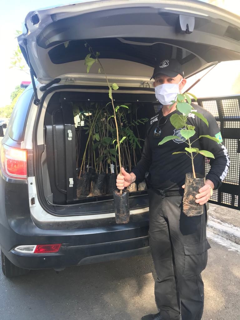 Além disso, os policiais também plantaram, no complexo de especializadas, por recomendação da AMMA, mais sete árvores: 3 ipês brancos no canteiro central do estacionamento e 4 pau-formiga na área interna da especializada.