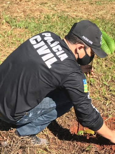 Policiais civis da Administração do Complexo de especializadas, representados pela síndica, delegada Mayana Rezende, e pelo subsíndico, agente de polícia Ney José da Silva Júnior, plantaram, na manhã desta quarta-feira (13), 50 mudas de plantas no Parque Campininha das Flores, no Setor Campinas, em Goiânia. Foram plantadas árvores nativas do Cerrado, como sibipiruma, leucena, jasmim manga, mangueiras e pata de vaca.