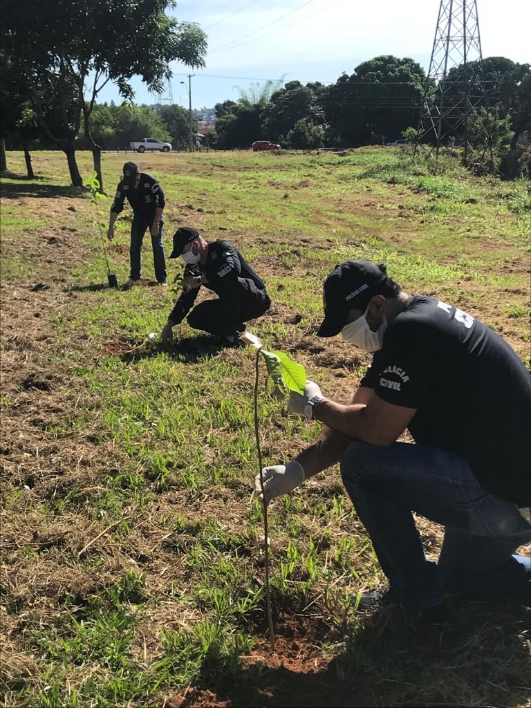 Policiais civis das especializadas plantam 50 mudas no Parque Campininha das Flores