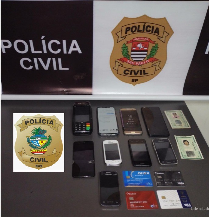 Após investigações e com apoio da polícia em SP, a PC-GO localizou o suspeito e o prendeu em flagrante delito. Foram apreendidos com ele, ainda, oito aparelhos celulares, documentos em nome de terceiros e cartões bancários.