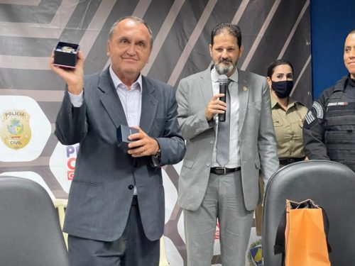 O Delegado-Geral da Polícia Civil, Alexandre Pinto Lourenço, bem como os demais membros das forças de segurança pública de Goiás – Polícia Militar, Polícia Penal, Superintendência de Polícia Técnico-Científica e Procon -, fizeram, na tarde de hoje (31/3), uma grande homenagem ao Secretário de Segurança Pública, Rodney Miranda. A homenagem ocorreu no auditório da SSP e, após a cerimônia, houve um coffee breake.