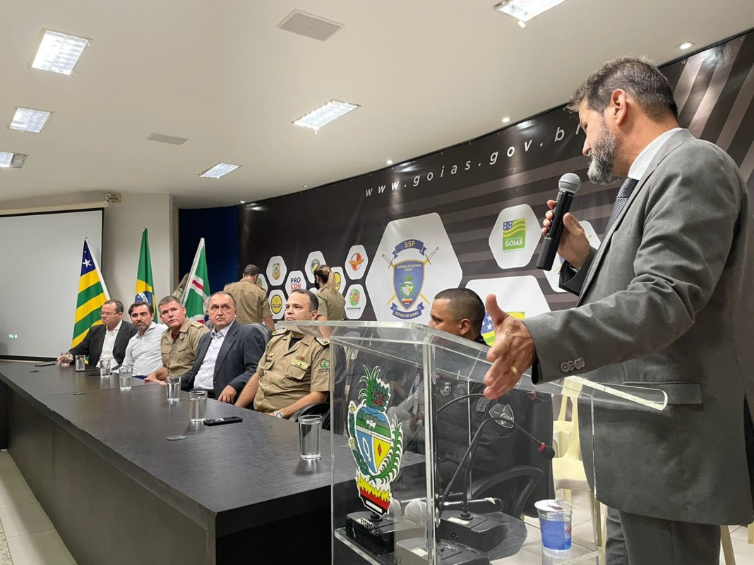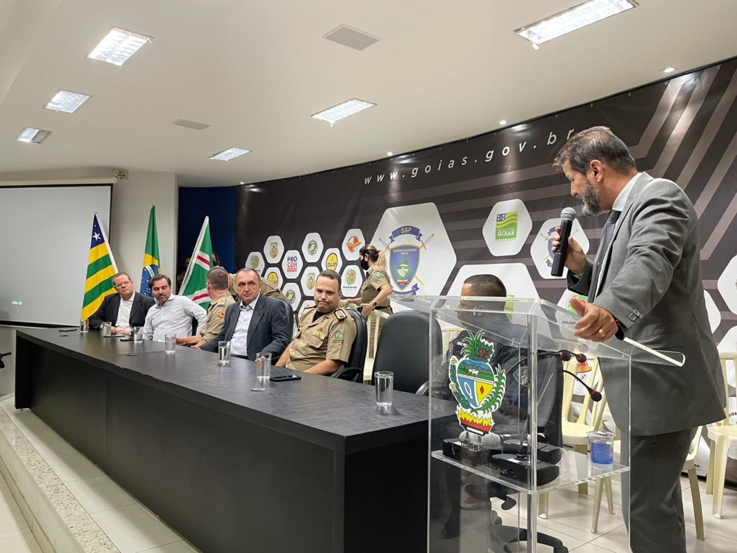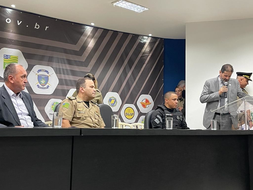 O Delegado-Geral da Polícia Civil, Alexandre Pinto Lourenço, bem como os demais membros das forças de segurança pública de Goiás – Polícia Militar, Polícia Penal, Superintendência de Polícia Técnico-Científica e Procon -, fizeram, na tarde de hoje (31/3), uma grande homenagem ao Secretário de Segurança Pública, Rodney Miranda. A homenagem ocorreu no auditório da SSP e, após a cerimônia, houve um coffee breake.
