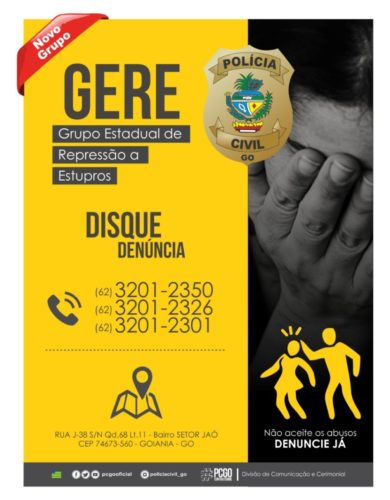 Confira os números do Grupo Estadual de Repressão a Estupros. Faça sua denúncia, não se cale!