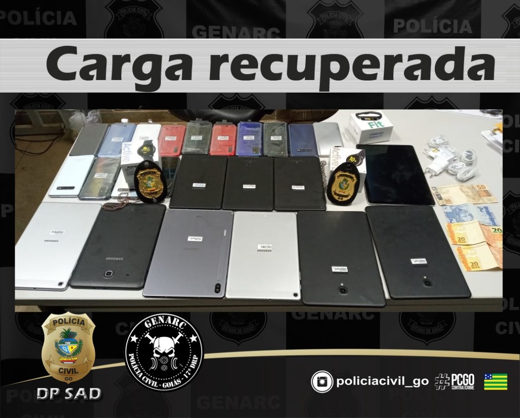 A Polícia Civil do Estado de Goiás, por meio do Grupo Especial de Repressão a Narcóticos (Genarc) de Águas Lindas de Goiás, e pela DP de Santo Antonio do Descoberto, com apoio da Polícia Civil de São Paulo e do Grupo de Investigação de Homicídios (GIH) de Águas Lindas, efetuou nessa segunda-feira (31), a prisão em flagrante de um homem suspeito de furtar vários celulares, tablets e relógios de uma loja em um shopping localizado em Guarulhos (SP). A ação ocorreu após o recebimento de uma denúncia anônima sobre um carga de aparelhos furtados que chegaria na cidade de Santo Antônio do Descoberto, sendo tais aparelhos provenientes de um furto em uma loja em São Paulo.